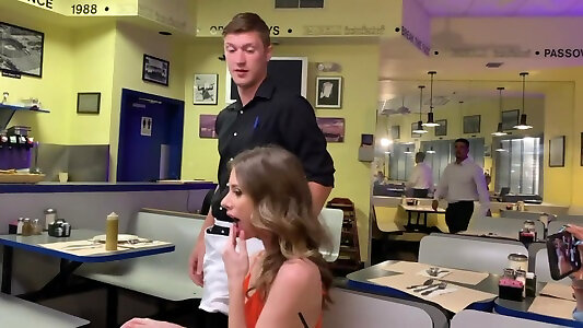 Jizm-thisty doll Anya Olsen lures waiter and nails him in the public toilet