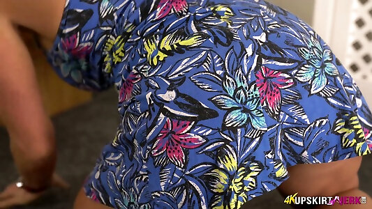 Mind-blowing stunner in high high-heeled slippers and a short mini micro-skirt with Lovence in rectal.