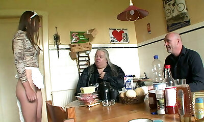 Wanton brunette doxy gets her slack tits and wrecked snatch vacuumed