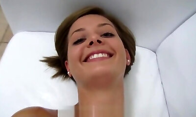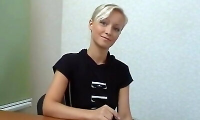 Lovely Petite Slim Blonde Teen Tries Her First Pummel On Camera And Really Enjoys It