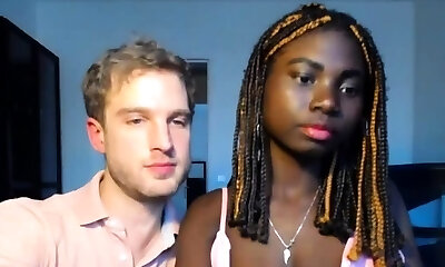 Hot slim dark-hued teen babe takes white cock in both crevices live