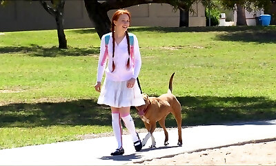 Redheat school girl flashes in public