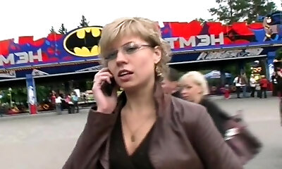 Blonde slut with glasses and big tits enjoys anal invasion sex