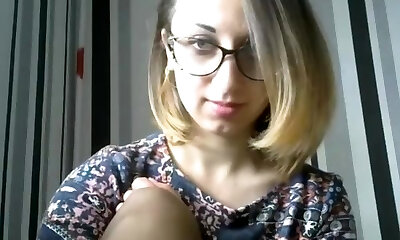 Platinum-blonde Bunny Saint with glasses watches aa guy jerking off