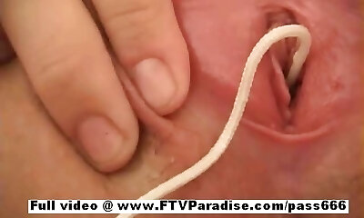 Preciosa anglosajona insert a bat in shaved beauty pussy home