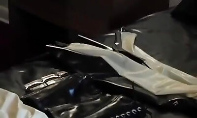 Latex rubber doll in fuck-protection dress.