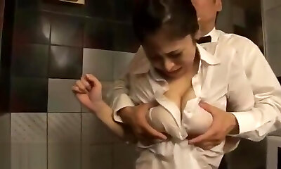 Japanese huge boobs maid fucked rock hard at work