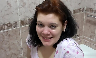 Free pussy show from first-timer white lady in the toilet