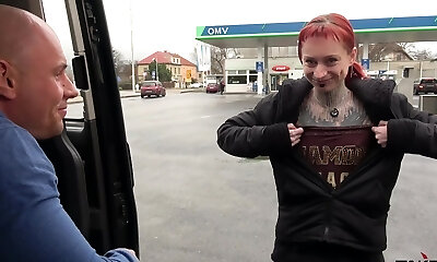 Totally Pierced and Tattooed Wierd Creature Rock the Man Rod in Driving Car