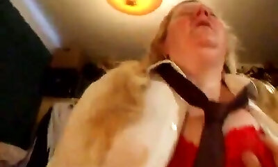 Obese ugly blonde wifey provides her hubby with solid blowjob and tit fucking