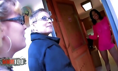 Hot amateur FFM action with ebony teenage and ugly brunette Milf