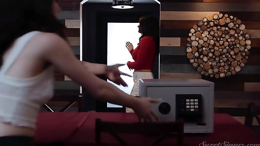 Hot brunette Aliya Brynn opens her legs to be fucked on a table