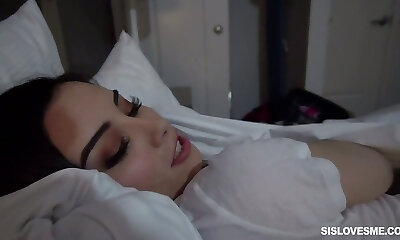 Lewd stepsister Aria Lee plays with stepbrother's trunk before falling asleep