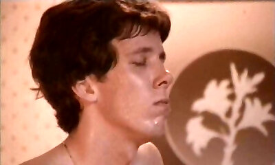 Retro brunette lady seduces a young man for sex