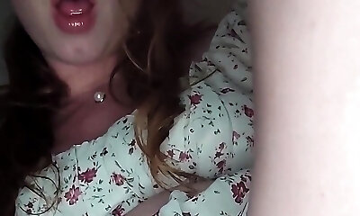 Sensual cougar in a pretty red sundress eats out coed pussy