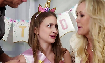 Platinum-blonde MILF Brandi Enjoy teaches Laney Grey how to fuck properly