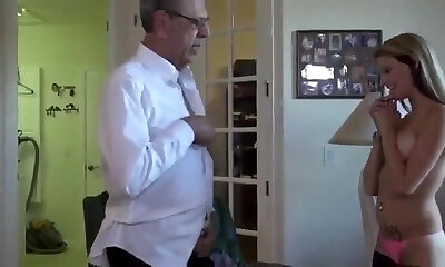 Nasty light-haired Mary Monroe gets her anus rammed in front of sleeping old daddy