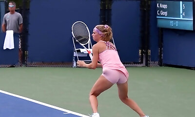 18 yo chick Anabelle is wanking her cooch right on the tennis court